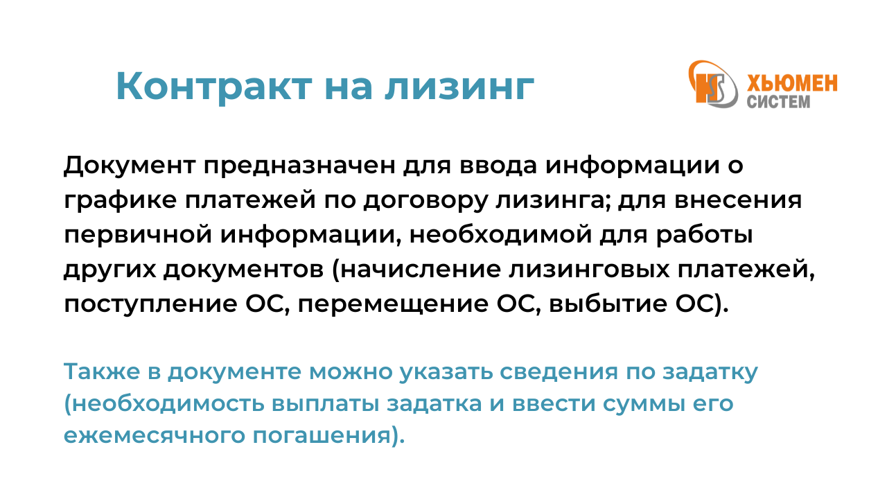 На официальном Youtube - канале компании "Хьюмен систем" новое видео, в котором мы на практических примерах рассмотрели функциональные возможности модуля "Учет операций у лизингодателя" в конфигурации "Моя бухгалтерия 8":