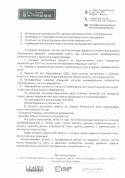 Завершен проект по автоматизации управленческого учета мультибрендовой компании, занимающейся имиджевой рекламой, - ООО «Колорэкспресс». В предоставленном по окончании проекта отзыве Заказчик поделился достигнутыми результатами, а также отметил высокие профессиональные и деловые качества команды, которая работала над проектом по автоматизации.