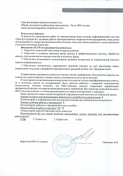 В своем отзыве Заказчик отмечает удовлетворенность результатами внедрения, считает поставленные в рамках проекта задачи достигнутыми, а программу – полностью отвечающей требованиям.