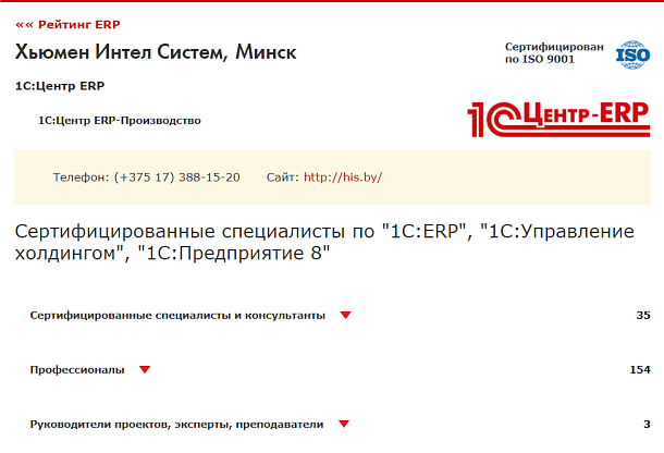 Группа компаний Хьюмен Интел Систем получила статус 1С:Центр ERP! Фирма «1С» рекомендует клиентам обращаться за внедрением ERP-решений в первую очередь к партнерам со статусом «1С:Центр ERP» для обеспечения качественного комплекса услуг по консалтингу и внедрению.