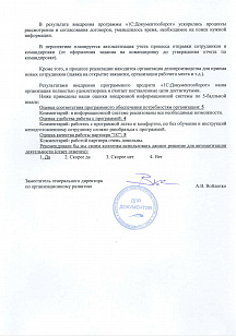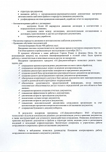 - по первичной настройке программы (встроенная и легкая почта, рабочий календарь, структура предприятия, налажена работа с организационно-распорядительными документами: авто заполнение шаблонов файлов и маршруты движения документов, унифицирована система проведения совещаний, доработан отчет по мероприятиям);