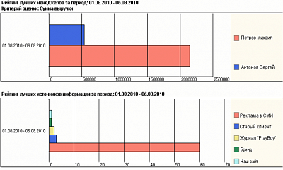Все отчеты содержат дружественный механизм управления, с помощью которого пользователь может изменять временной период отчета, набор отображаемых показателей, степень детализации, порядок группировки, форму отображения информации и т.д., если его не устраивают настройки по умолчанию. Настройки можно сохранять в информационной базе для повторного использования.