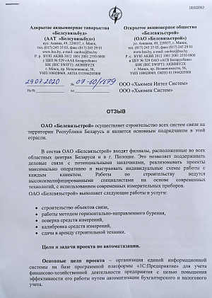 Завершен проект по автоматизации бухгалтерского и налогового учета в ОАО «Белсвязьстрой» и его филиалах. По результатам выполненного комплекса работ Заказчик предоставил отзыв, в котором поделился достигнутыми результатами и дал оценку проекту по автоматизации в целом.