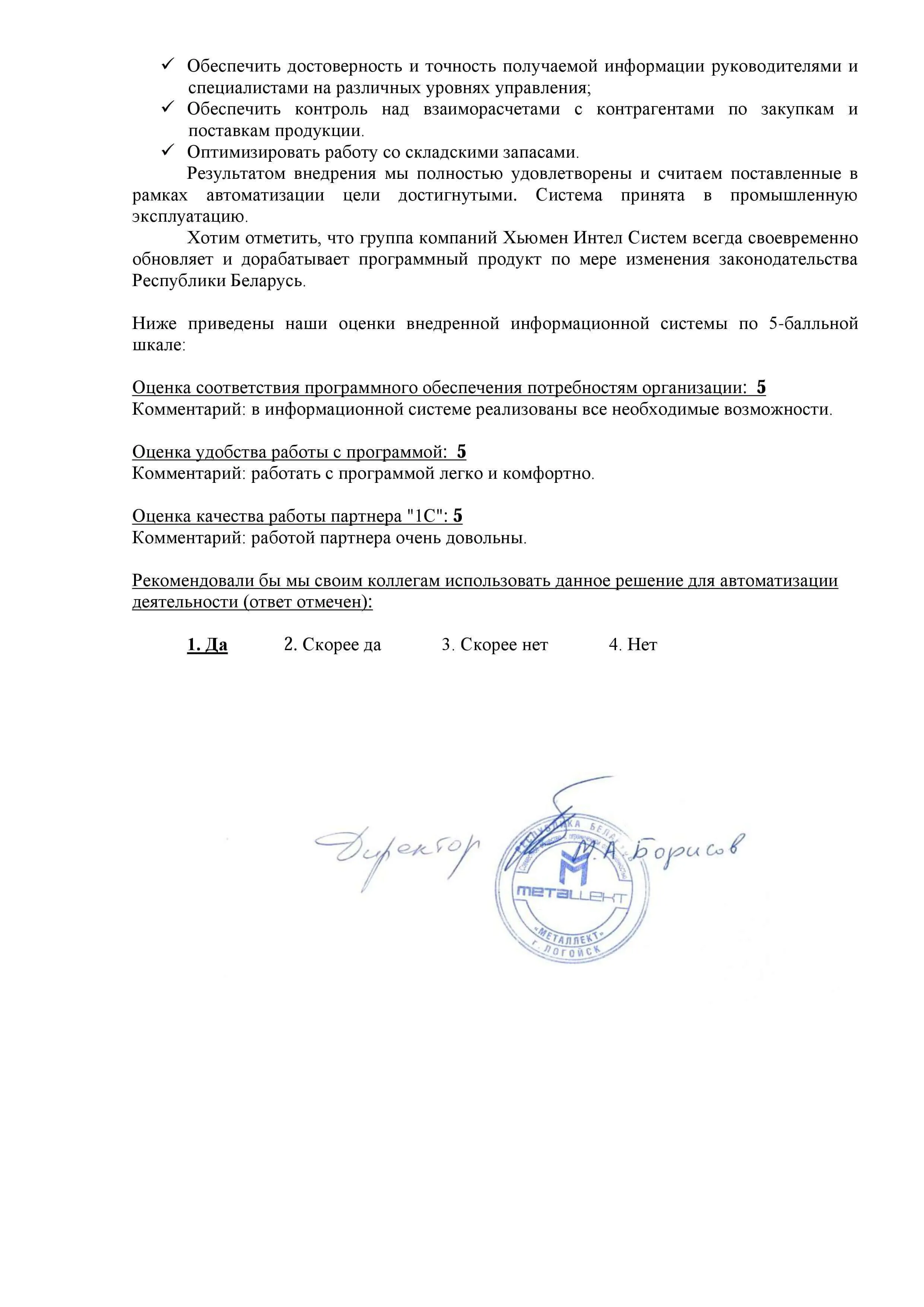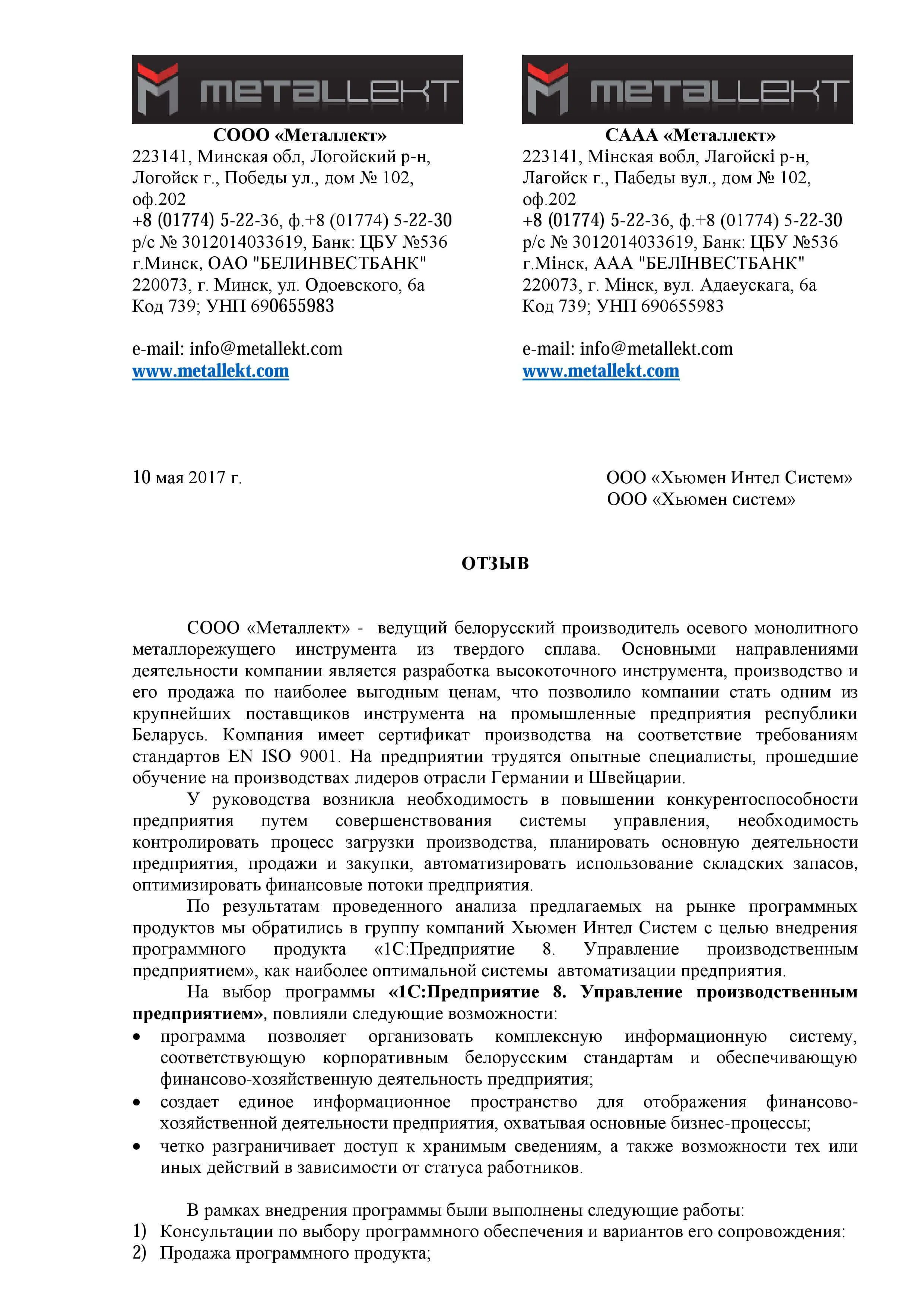 Внедрение оригинальной конфигурации "Моя бухгалтерия 8", разработанной с использованием ПП "1С:Бухгалтерия 8 для Беларуси", в СООО "Металлект" |