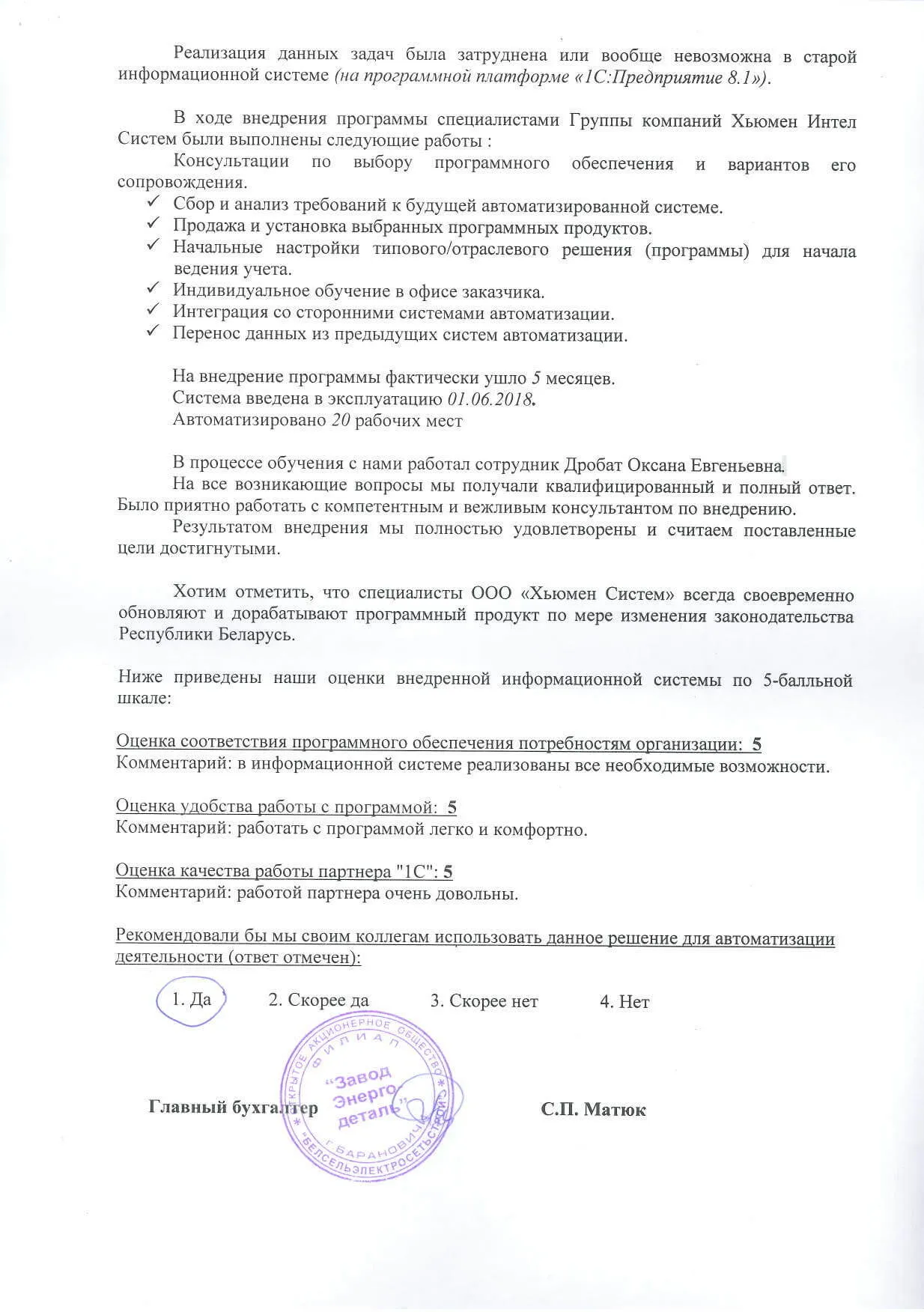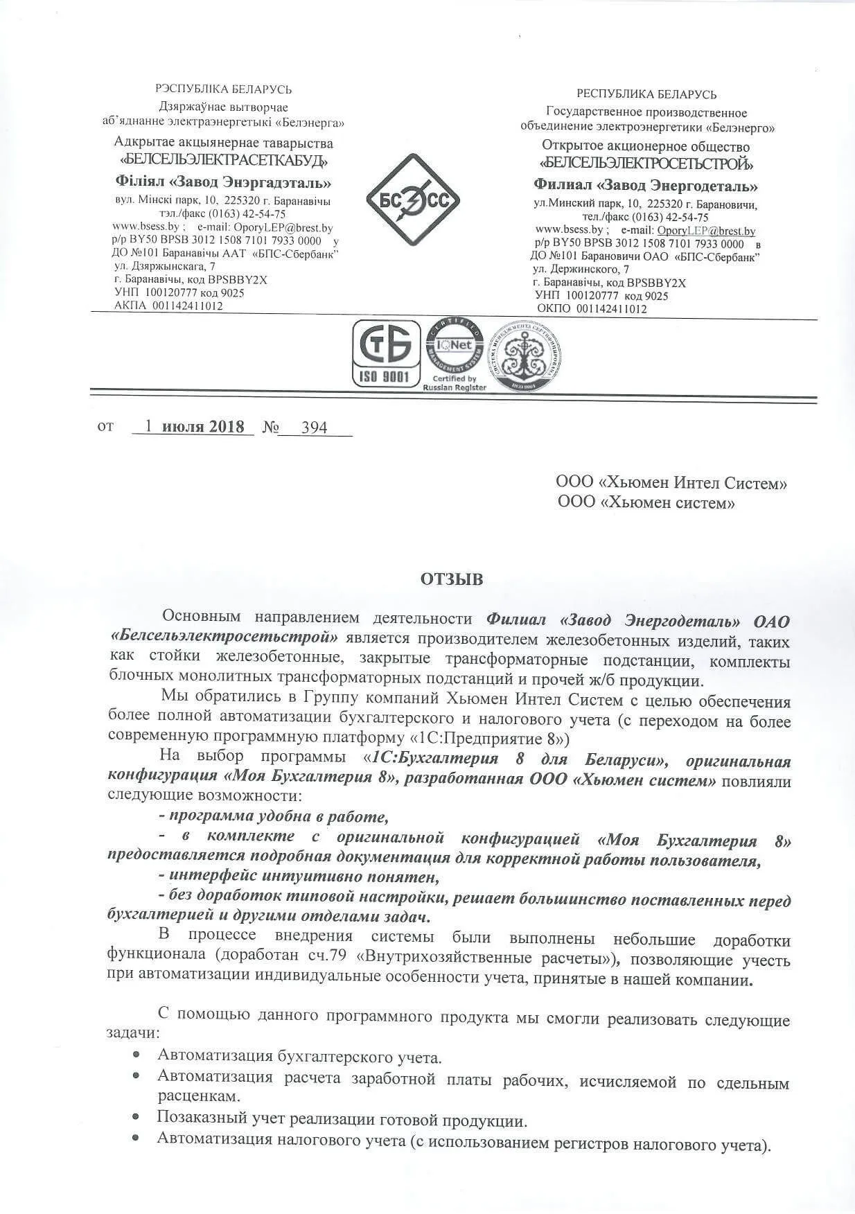 Внедрение оригинальной конфигурации «Моя бухгалтерия 8», разработанной на базе «1С:Бухгалтерия 8 для Беларуси», в Филиале «Завод Энергодеталь» ОАО «Белсельэлектросетьстрой» |