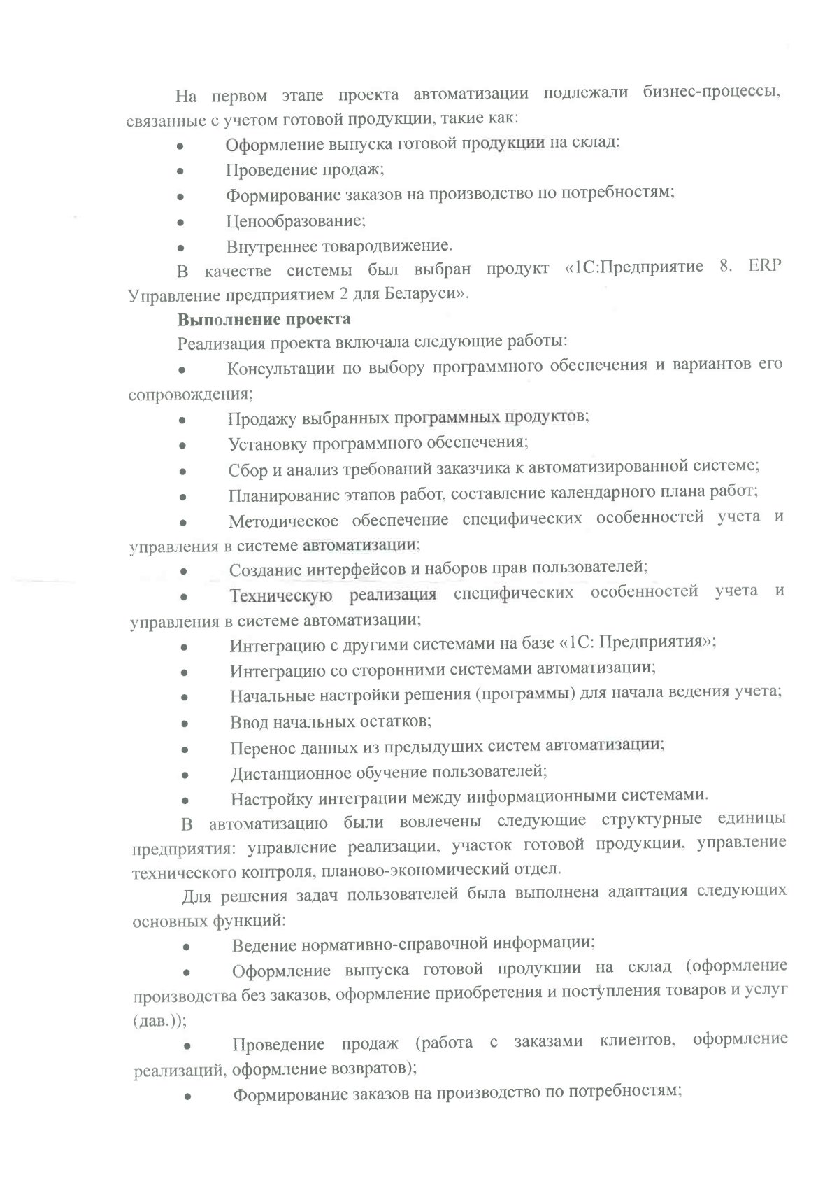 В результате выполненных проектных работ была создана и внедрена новая информационная система, сотрудники компании были обучены работе с новым программным обеспечением, был обеспечен обмен данными с другими информационными системами, действующими на предприятии.